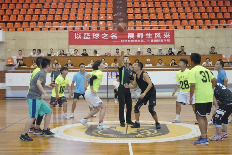 教师队一度领先,学生队奋起直追,一举拿下了全场首个三分球。直至上半场结束,两队比分为21比17,教师队暂时领先。