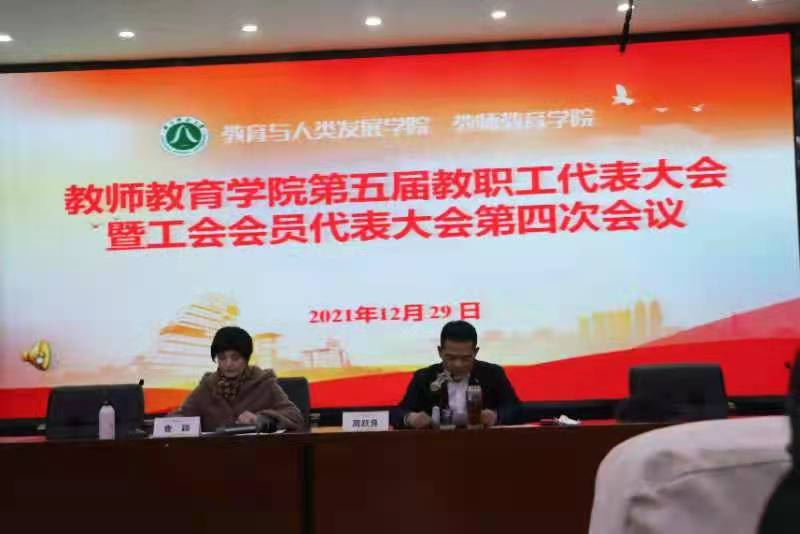 2021年12月29日下午,第五届教职工代表大会暨工会会员代表大会第四次会议在17幢112报告厅召开。会议由学院党委书记查颖主持。