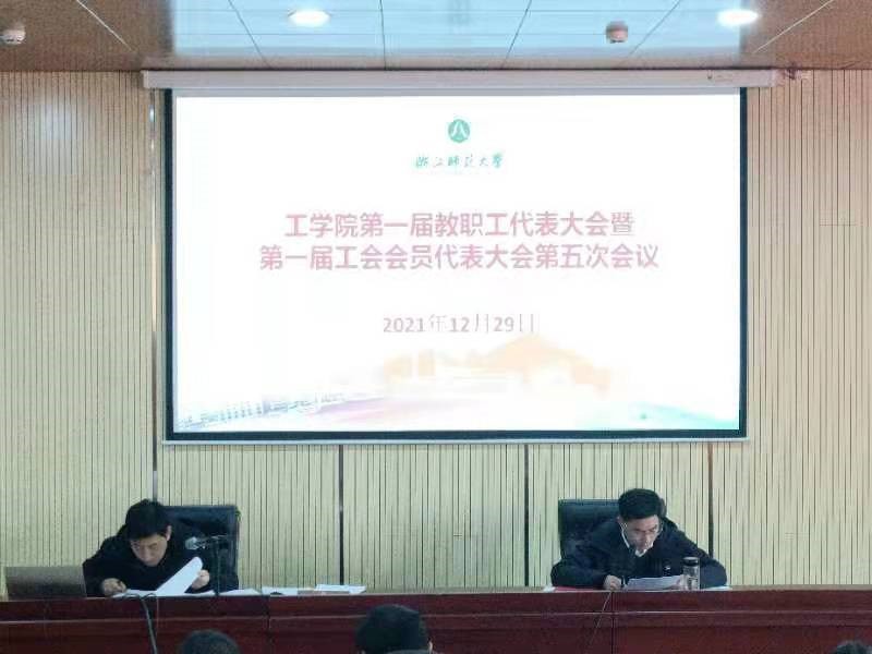 2021年12月29日下午,工学院在30幢一楼报告厅召开学院第一届教职工代表大会暨第一届工会会员代表大会第五次会议。会议由学院党委书记童卫丰主持。