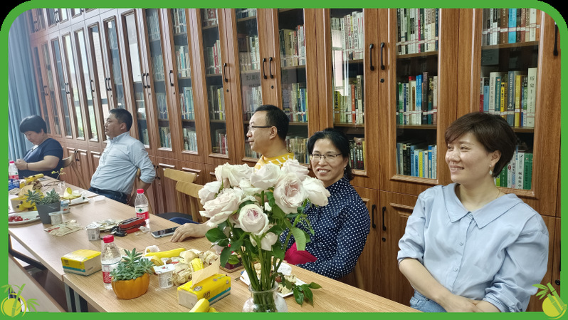阳光明媚,窗明几净。新老教师们畅所欲言,分享自己在日常生活中的趣事儿,引得笑声连连。几位新进教师讲述了初遇金华的感受,景美、人美、生活美达成了共识。