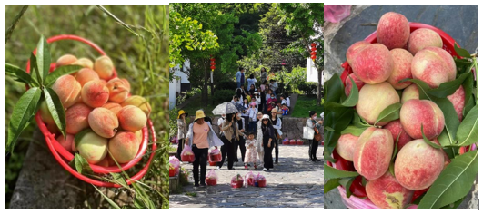 27日,天公作美,太阳公公露出了他久违的笑脸。中午,大巴车搭乘着兴奋的我们迈着欢快的步伐出发。下午到达了群山环绕、林木葱郁、环境优美的源东乡。一下车,首先映入眼帘的是漫山遍野压弯了枝头的桃树,硕大的桃子挂在枝头,随风摇摆,仿佛在跟我们打招呼呢。大家在工作人员的指导下,带上手套、帽子,提着篮子,全副武装,迫不及待地走进一望无际的采摘园。此次采摘的桃子是大观桃,属于名副其实的早熟品种,与油桃差不多时候上市。