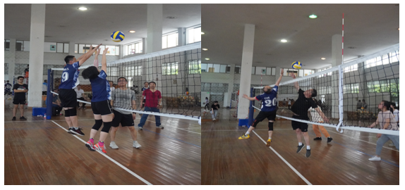 2022年6月8日,物电学院教职工在学校风雨操场的排球馆举行气排球活动。赛场上,老师们斗志昂扬,团结友爱,场面生动活泼,各种精彩的进攻和防守层出不穷。现场高潮迭起,掌声、呐喊声不断,让观众充分感受到了气排球运动的魅力。每一局比赛、每一滴汗水,都彰显着物电人团结友爱、拼搏进取的精神风貌。此次活动不仅为忙于工作的老师们提供了放松心身、促进交流的机会,增强了物电人的凝聚力,还提高了大家对气排球活动的兴趣,在学院掀起新健身热潮。