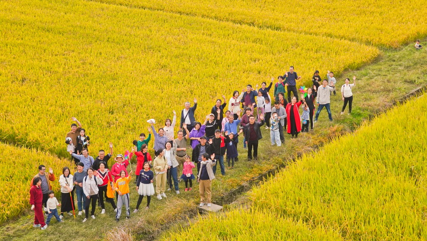 接着,我们跟随导游参观了村容村貌,鳞次栉比的家庭洋楼让大家感受到了浙江省农村发展日新月异的新面貌,同时,农耕文化更是为乡村振兴增添了文化底蕴。大家不仅参观了水渠的运作原理,也见识了农民手工打豆的传统技术。在登上稻田观景台后,全村的美景尽收眼底。最后,参加活动一行人以金色稻田为背景,愉快地合影留念。
