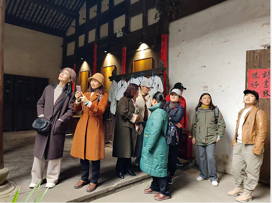 老师们兴致勃勃的走进幽径通幽的老巷。古村老房,青苔幽幽的石砖,巧夺天工的木雕,百鸟的斗拱,灵兽的梁枋无不让人神往。与古代建筑对话,品味悠悠岁月留痕。