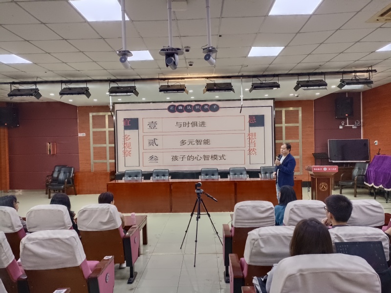 讲座共分为三个部分,第一部分重点讲述学会正确认识孩子的方法,第二部分阐述遵循与孩子相处的原则,第三部分为掌握与孩子成长的技巧。在正确认识孩子中,陈博士谈到,要与时俱进,在多元智能的时代,了解孩子的心智模式。在谈到与孩子相处的原则的时候,陈老师从尊重孩子有边界的意识,有效的惩戒,坚持底线的原则,宽容友爱,容错机制的原则,因材施教,不比较的原则几个方面来展开。在和孩子沟通的技巧方面,他建议大家要慢下来,多问问孩子为什么;要蹲下来,用孩子的视角去看待世界;要缓下来,做情绪的主人会更好;要懒下来,给孩子做事的机会;要爱起来,成为孩子成长中的天使。他提出用“三个一”构建有质量的陪伴,建议大家与孩子同读一本书,陪走一段路,共做一件事。陈老师结合自己多年研究成果,旁征博引,给大家带来一场精彩的讲座。