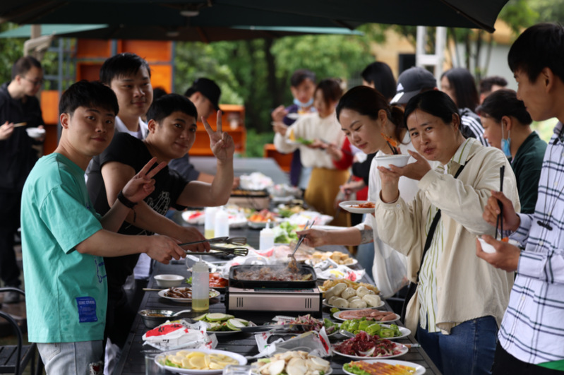 到达活动场地后,按照事先分配好的队伍,开展“同心协力共寻宝”活动, 分别寻找后勤“师生至上”“大诚克俭”“后位行先”“勤业谋远”十六字宗旨,随后开展了“嗨唱时光”“共制美食”等趣味活动。