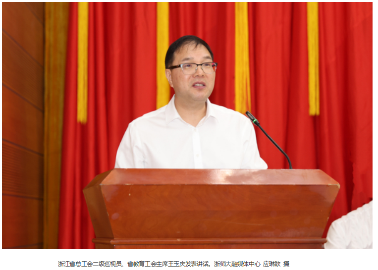 王玉庆代表浙江省教育工会对大会的召开表示祝贺,向出席会议的全体代表、全校广大教职工和工会工作者致以敬意,向长期以来重视关心支持教代会、工会工作的学校党委、行政、领导表示感谢。王玉庆希望新一届教代会、工代会要坚持正确方向,团结引领广大教职工坚定不移听党话、跟党走;要牢记总书记嘱托,着力彰显教育系统工会担当作为;要切实维护教职工合法权益,推动广大教职工共享高质量发展成果。在学校党委的坚强领导下,在校行政的大力支持下,带领校院两级教代会执委、工会干部干在实处、走在前列,团结引领广大教职工为忠实践行“八八战略”、奋力谱写中国式现代化浙江篇章作出新的更大贡献。
