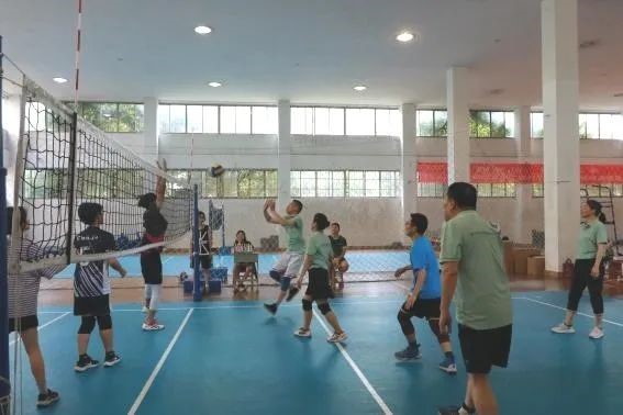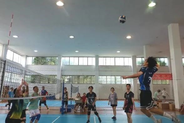 6月15日上午,师生排球联谊赛在风雨操场如期进行,排球运动以团队配合著称,每一次发球、传球、扣球、拦网都在考验一队五人之间的配合程度。比赛一开始,教工队就凭着配合轰开了学生队的防线,而学生队在气排球上不充分的磨合导致失误频频发生,最终两队比分拉大差距,教工男女两队都以2:0胜出比赛。
