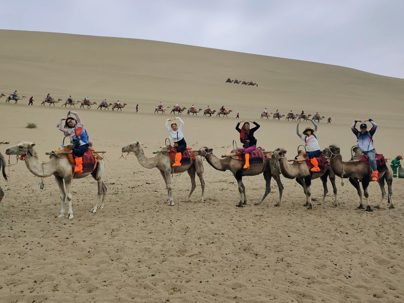 月牙泉,鸣沙山:山泉共处,沙水共生的奇妙景观著称于世,被誉为敦煌八景之一。其形酷似一弯新月而得名,古往今来以山泉共处,沙水共生的奇妙景观。大伙们也感受一下骑骆驼,堵骆驼,看骆驼红绿灯的景观。