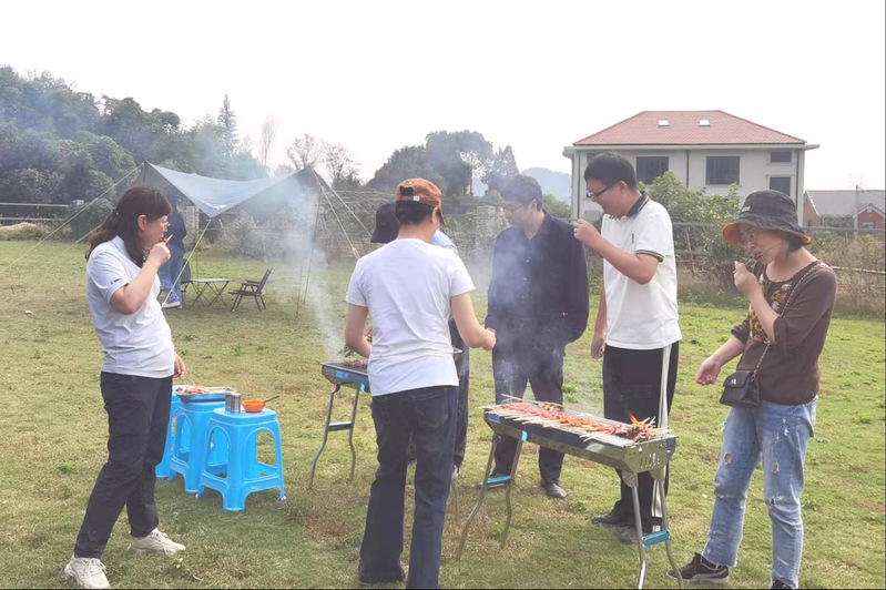 中午在大草坪上的自助烧烤更是气氛热烈,老师们化身烧烤达人,精心制作出一串串美味给大家分享。此时阳光和煦,秋风习习,惬意悠闲,谈笑声飘荡在营地上空,和蓝天一样舒朗开阔。