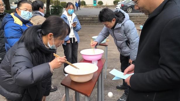 第三个项目是夹乒乓球比赛,每个参赛者手持筷子,将一个个圆滚滚的乒乓球从脸盆中夹出。这项看似简单的活动却需要高超的技巧,选手们夹住乒乓球的瞬间,现场观众都不禁为之击掌喝彩。参与其中的教职工不仅锻炼了手部灵活性,还提升了对细节的敏感度。