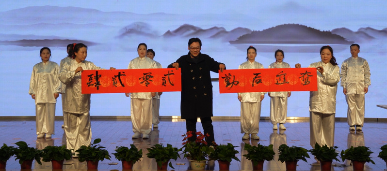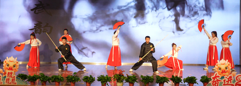 “中华大密,藏于太极”,教育服务部的古筝太极表演《渔舟唱晚》,融传统武术、音乐与书法艺术于一体,向大家展示了太极的刚柔之美、神韵之美和协调之美。