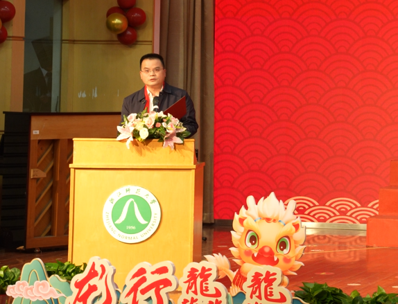 党委书记、主任王利明致辞。回望2023,浙师后勤人勠力同心、和衷共济,取得了丰硕的成果。王利明代表后勤服务中心向全体后勤人致以最诚挚的感谢和最美好的祝福,祝愿后勤服务中心在新的一年里为学校高水平大学建设作出更大的贡献,祝愿全体后勤人龙年新春快乐、万事如意、阖家幸福!