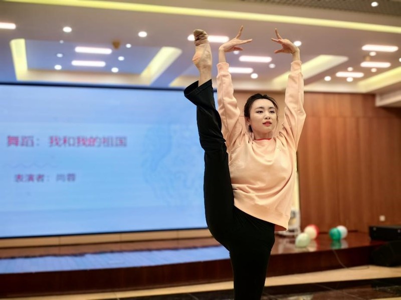 尚蓉老师曾是一名中国国家队艺术体操运动员,多次代表国家出战。祖国于心,是力量,是信仰,是永恒的光,她用《我和我的祖国》舞蹈来表达对祖国的热爱,赢得了大家热烈的掌声。