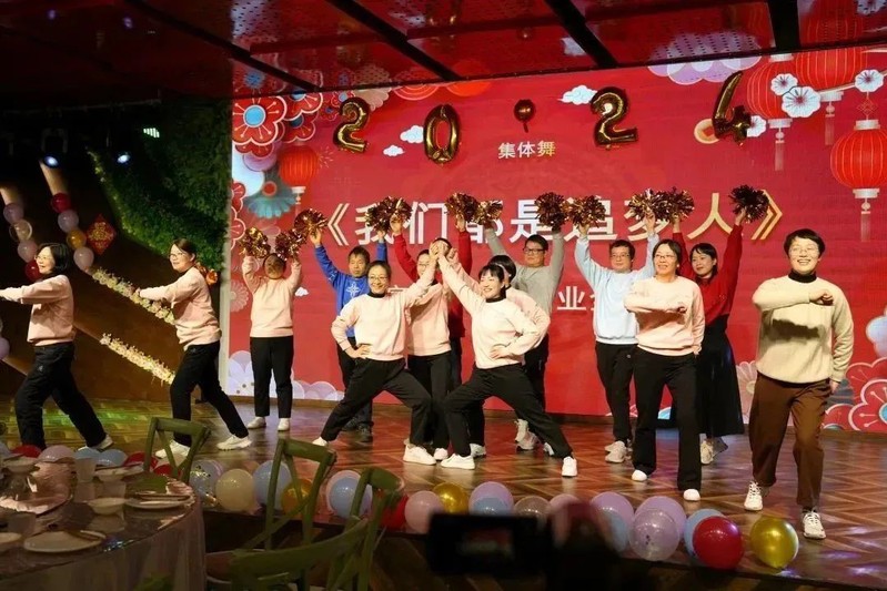 2024年1月19日晚,经济与管理学院(中非国际商学院)2024年“龙韵华章,‘经’彩纷呈”新春团拜会在师大人家宴会厅举行。百名教职工齐聚一堂,庆祝龙年新春的到来。本次团拜会精心准备了十八个节目,不仅有精彩的文艺演出和有趣的互动游戏,还有丰富的抽奖活动。现场气氛热烈,充满欢笑与温情。