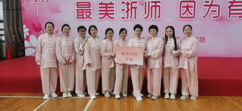 在3月8日下午学校“三八”国际妇女节活动中,女教工代表们带来了精彩的八段锦养生**表演,身着统一的服装,排列出了整齐划一的队形,展现出积极向上的精神风貌,一呼一吸练就强健体魄,一招一式传承中华文化,充分绽放“她”风采。教育学院工会拟成立健身拉拉社,每周一次拉伸活动,形成全民参与、快乐健身的新风尚。