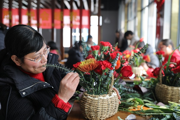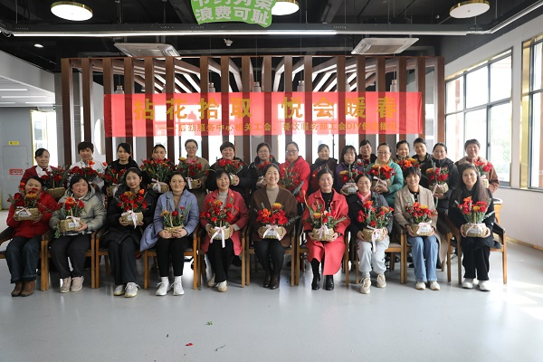 餐饮服务部分工会、机关分工会在桃二餐厅共同举办了一场主题为“拈花拾取、悦会暖春”插花活动,近30名骨干女员工参加活动。