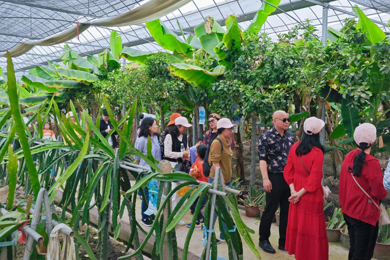 3月30日,春意正浓,外国语学院工会组织教工踏上了踏青采摘的春游旅程。本次春游,我们选择了近郊的金东区晓玉火龙果种植园作为第一站。一进入果园,就如同置身热带:一排排火龙果苗整齐排列;火龙果上叠种着牛奶枣,挂满成熟的果实;路边香蕉树上结着一串串绿蕉,香蕉树的层层花苞引人驻足。除此之外,果园的主人为我们介绍道,果园里有芝麻蕉、马来西亚杨桃、红心芭乐、木瓜、台湾青枣等20多种水果,简直是喜欢水果的吃货的天堂。参观后,大家在果园的野餐区享用了园主准备的水果拼盘,大家坐在一起品尝特色果品,谈笑风生,其乐融融。