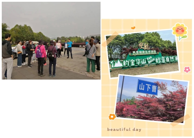 经过一个多小时的徒步前行,大家抵达了阶段性目的地——山下曹村。稍事休息后,老师们便兵分几路,自由活动。或相约竹林踏青,提着布袋,穿梭林间,体会挖笋的山野乐趣;或组队知春意寻春味,打野菜采野花,探寻自然馈赠;或迈着矫健的步伐,锻炼身体,登顶高山,一览金华城美景;或驻足梅园观景亭,体验户外的美丽和宁静,尽情享受新鲜空气和色彩斑斓......一个小时之后,大家纷纷返回山下曹集合点,老师们个个笑靥如花、满载而归,或满头大汗满袋野笋,或满心欢喜满把野菜,或满眼光亮满捧野花.....