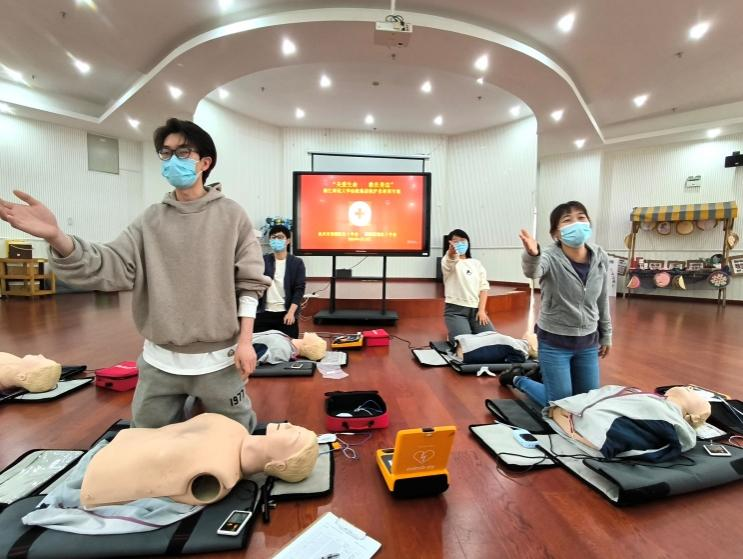 在完成系统而全面的理论知识培训后,每位教职工都在培训老师的细心指导下开展模拟练习,不断纠正错误、规范操作,直至熟练掌握了心肺复苏、AED操作、包扎等关键技能。