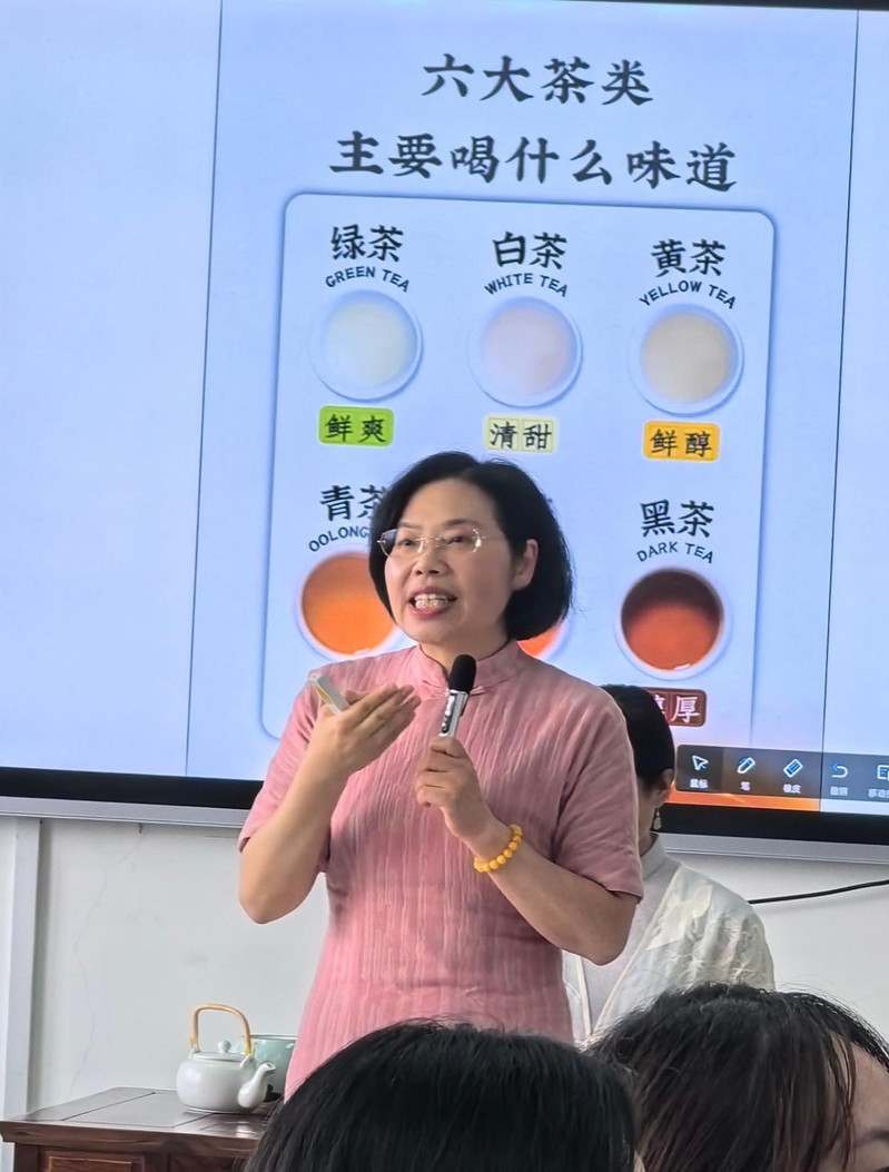 作为国家高级茶艺技师,中国农业科学院茶叶研究所第三届茶艺师资班优秀学员,中国茶叶学会“一带一路”茶文化科普讲师,马老师从茶和女性契合的角度,介绍了茶文化的起源和历史,讲解了六大茶类的基础知识、茶叶识别、保健功效、品鉴技巧等,给大家带来一场关于茶艺的知识盛宴。在体验环节,大家捧起盖碗,烫杯、洗茶、冲茶、敬茶,学习了以茶为礼、以茶待客、以茶会友的茶艺知识,体验了优雅的茶艺表演,收获满满。
