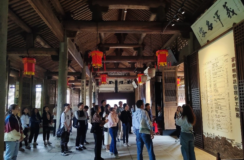 学院全体教职工首先来到“江南第一家”开展廉洁教育集体学习。“江南第一家”又称郑义门,坐落于浦江县郑宅镇,是全省首批廉洁文化教育基地、浙江省教师师德涵养基地。居于此的郑氏家族,以孝义治家闻名于世。长达168条的传世家训《郑氏规范》,被誉为中国传统家训的重要里程碑。都说家是最小国,国是千万家,江南第一家便是古代家族文化典范, 同居共食达三百六十余年,鼎盛时,三千多人同吃一“锅”饭。跟随导览员的脚步,老师们经过孝感泉、九世同居碑亭、东明书院、“十桥九闸”、郑氏宗祠等等,惊叹于江南第一家独具特色的古镇风貌和丰富的文化内涵,深切感受“郑义门”家规中蕴含的为官、做人之道和有序、师俭的廉洁文化。
