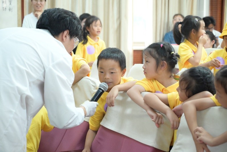 接着,化材学院的老师们为在场的小朋友们呈现了一场别开生面的科普盛宴。以“大象的牙膏”作为开场,紧接着阿拉丁神灯帮我们实现了三个愿望,“控制彩虹”、“控制冰冻”、“控制火焰”,小朋友们被神奇、震撼的现象深深吸引,目不转睛,积极互动,争相回答问题,参与实验,与老师们共同探索科学的奥秘。这场科普秀不仅充实了孩子们的科学知识,也进一步激发了孩子们的好奇心、求知欲。
