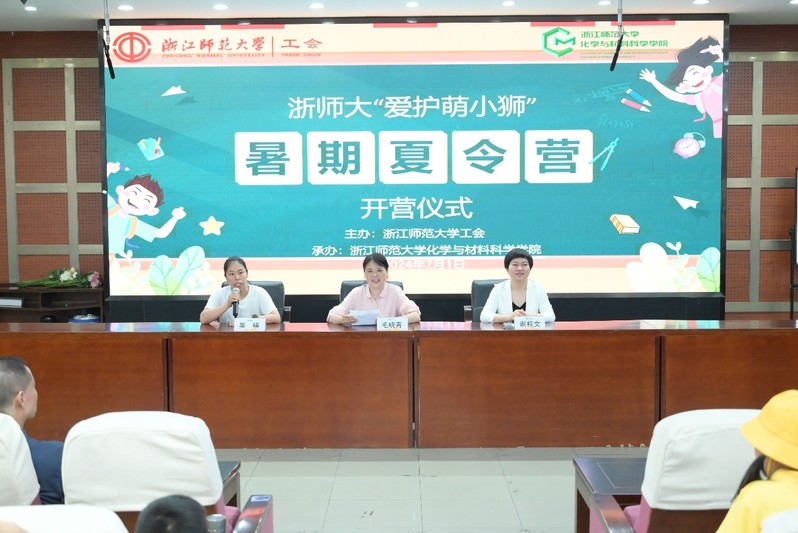 2024年7月1日上午,由校工会主办,化学与材料科学学院承办,体育学院、人文学院、外语学院、艺术学院、物电学院、生科院协办的“爱护萌小狮”教职工子女暑期夏令营在孩子们的期待和笑语中拉开帷幕。化材学院党委书记谢枝文、校工会副主席毛晓青、各二级工会主席出席开营仪式,共同见证这一欢乐时刻。开营仪式由化材学院工会副主席吴瑛主持。