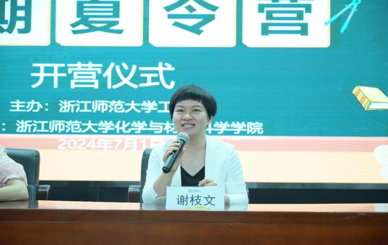 谢枝文对课程安排及日常管理作介绍。她表示,作为承办单位,化材学院一定会全力以赴做好组织管理工作,不辜负校工会的信任、教职工的重托,努力以热心、细心、暖心的服务,为夏令营的圆满成功提供坚强保障。