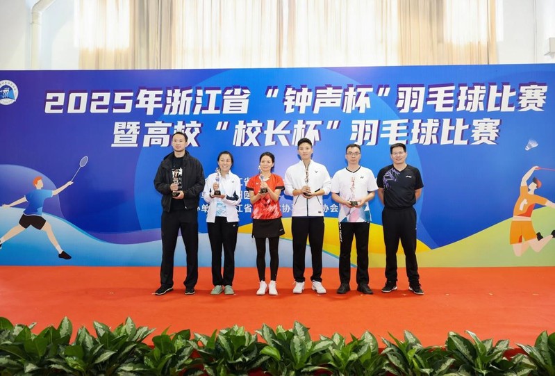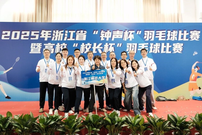 10月23日至25日,2025年浙江省“钟声杯”羽毛球比赛暨省高校“校长杯”羽毛球比赛在温州医科大学茶山校区举行,省教育工会主席王玉庆出席开幕式并宣布开赛。来自全省36所高校的600余名教职工运动员齐聚赛场,共展高校体育风采与育人活力。我校15位教职工“羽协”健儿组队出征,校工会副主席毛晓青担任领队,教职工羽毛球协会秘书长张斌担任教练。