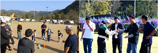 午后暖阳洒落,一行人驱车前往大畈营地。营地依山傍水,景致开阔,集房车区、水域体验、草坪活动等多功能于一体,是开展户外协作的理想场所。在教练的引导下,大家迅速破冰分组,展开了多项趣味团建活动。“接力筑塔”环节,体育学院教师身手矫健,传递迅速;医护团队则严谨细致,稳扎稳打。双方各展所长,默契协作,每一次成功的搭建都引来阵阵喝彩。随后的“飞盘接力”与“大合舞”更是将气氛推向高潮,大家在奔跑与欢笑中释放压力,也在配合中悄然拉近了彼此的距离。