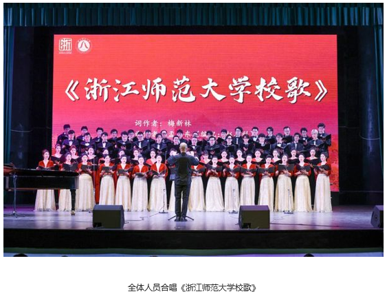 “我们从钱江之滨起航,我们在芙蓉峰下成长……”当艺术学院唱响这熟悉的旋律时,全场观众不约而同地起身,齐声高唱《浙江师范大学校歌》。