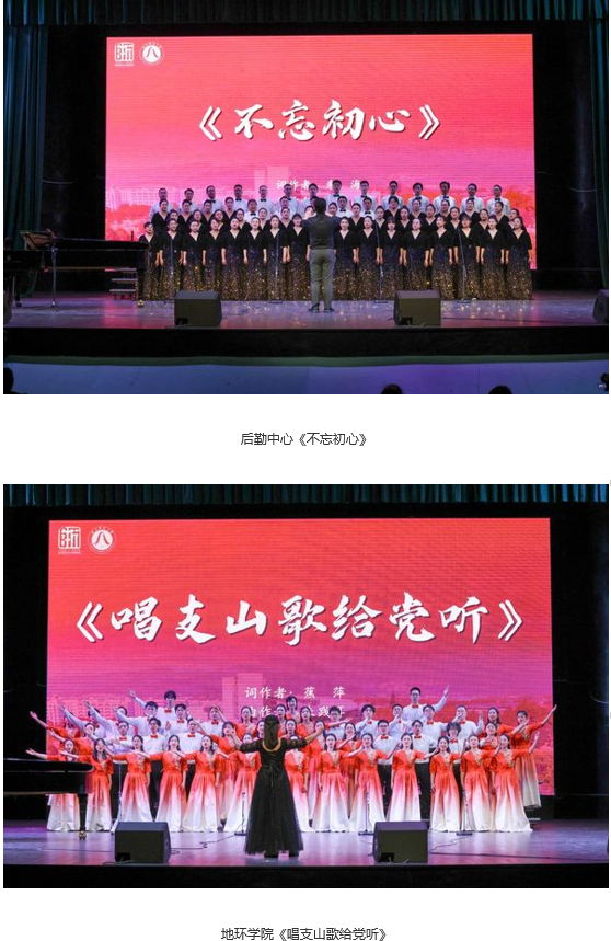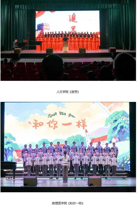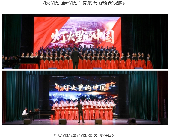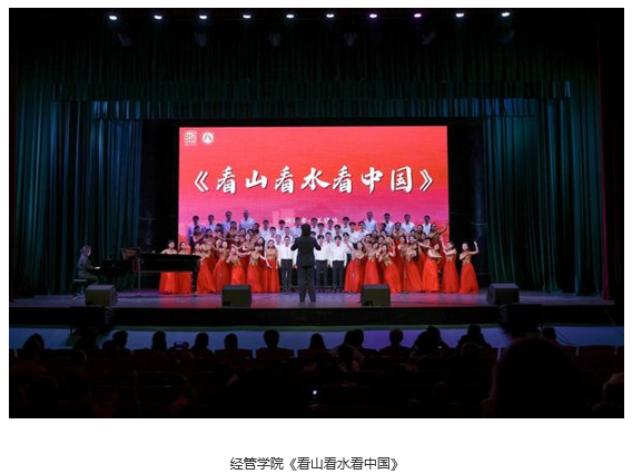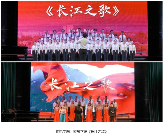 伴随外语学院《保卫黄河》的雄壮歌声,合唱比赛拉开帷幕。物电学院、终身学院两支队伍献上《长江之歌》,经管学院齐唱《看山看水看中国》,描绘祖国河山,赞颂盛世华章。