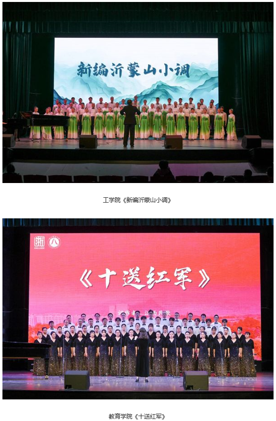 工学院演绎《新编沂蒙山小调》,教育学院带来《十送红军》,后勤中心唱响《不忘初心》,地环学院演唱《唱支山歌给党听》,歌声真挚悠扬,表达了对党的深厚情感与忠诚信仰,生动诠释了七秩校庆的深刻主题。