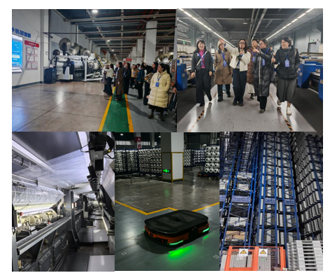 作为荣获国家5G工厂称号、引领行业智能化转型的标杆企业,真爱毯业是全球毛毯工业4.0未来工厂的典范。协会一行深入生产车间,实地观摩从原料到成品的全流程智能制造体系。企业研究院执行院长厉巽巽详细介绍了“边织边检”智能质检系统等创新成果。偌大厂房里人影寥寥,唯有AGV小车不知疲倦地穿梭奔忙,这一幕使会员们亲身感受到了传统织造向现代“智造”的跨越升级,深刻体会到科技赋能产业转型的生动实践。望着高达38米的巨型立体仓库,以及精准作业、有条不紊的机械臂,会员们又见证了理论与实践深度耦合的可行路径,了解到产业应用对前沿理论的迫切需求,更窥见了二者相向而行、互促共进的广阔前景。
