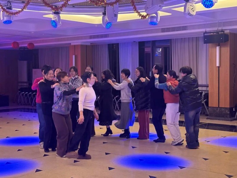 当晚,多功能厅内灯光璀璨、氛围热烈。伴随着悠扬动听的旋律,舞会正式拉开帷幕。大家纷纷步入舞池,华尔兹的温婉流畅、探戈的明快激昂、恰恰的活力俏皮轮番上演,舞步流转间尽显交谊舞的独特魅力。大家以舞为媒,在默契的配合与轻盈的旋转中交流技艺、增进情谊,每一个动作都饱含着对新年的美好期许。