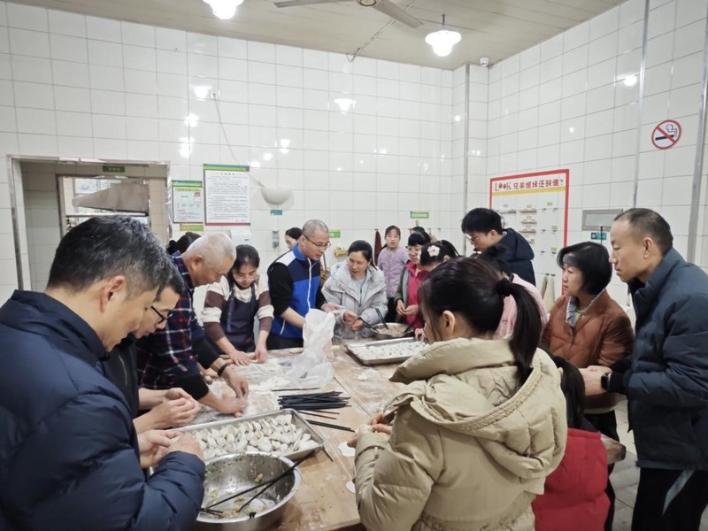 赛后全体参赛人员前往桂二食堂进行包饺子活动。羽协提前精心筹备了雪白的饺子皮、鲜香多样的馅料及全套工具,教职工们自发分组围坐桌边,迅速投入到热火朝天的 “创作” 中。手法娴熟的 “高手” 们行云流水,元宝饺、月牙饺形态规整;大家一边揉面擀皮、包馅捏边,一边畅谈工作心得、分享生活趣事,欢声笑语中,原本互不熟悉的同事渐渐熟络,浓浓的温情在烟火气中悄然传递。一锅锅热气腾腾的饺子新鲜出锅,大家围坐一桌,共同品尝亲手包制的美味佳肴。鲜香的馅料在舌尖弥漫,温暖的情谊在心底升腾,一张张笑脸在镜头中定格,一声声新年祝福在餐厅回荡。