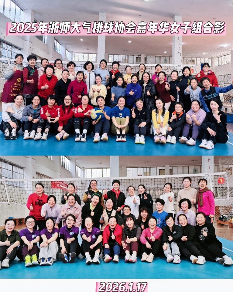 从风雨操场繁忙的日常训练到年末的嘉年华,浙师大教工气排协会的 2025 年,是 “以球聚友” 的一年:200多名会员从陌生到熟悉,在一次次发球扣杀中凝聚成紧密的集体;也是“以暖共情”的一年:这场压缩成一天的活动,把竞技的活力与烟火的温情揉进同一时空,让 “教工协会” 不只是 “运动组织”,更成了会员们工作之余的 “温暖据点”。