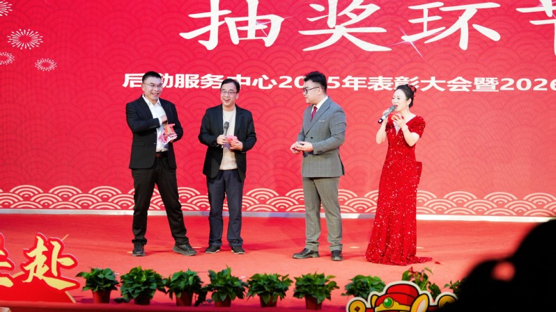 晚会期间,三轮激动人心的抽奖环节穿插进行,中心领导相继登台抽取幸运盲盒,将惊喜与祝福送至员工手中,现场欢声笑语不断,气氛热烈。