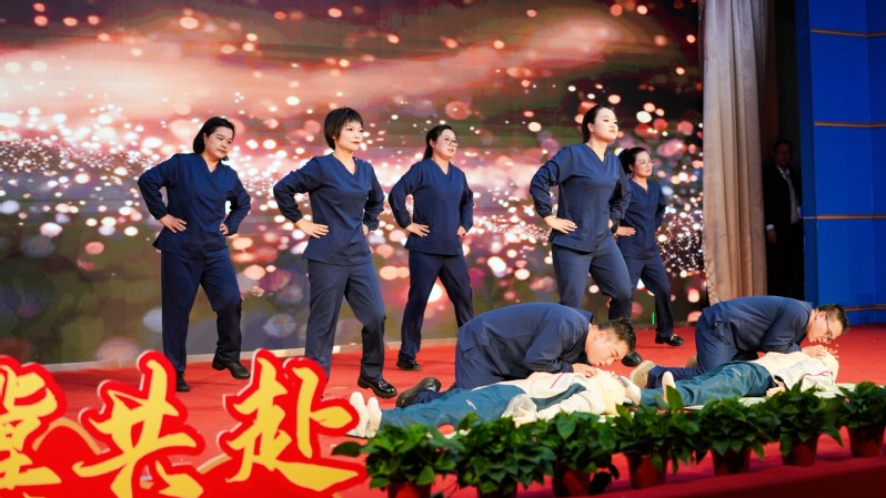 校医院白衣天使们的工间操《生命律动—CPR之舞》,将专业救护知识融入艺术表演,彰显了医者仁心与对生命的敬畏。