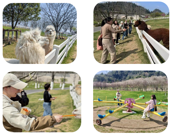 活动途中,老师们或驻足拍照定格美好瞬间,或围坐交流分享生活趣事,或投喂一旁憨态可掬的羊驼,或坐上跷跷板重温儿时快乐时光......欢声笑语此起彼伏。此次踏青之旅,既是一次亲近自然的放松之行,更是一次凝心聚力的赋能之行,展现了我院女教工昂扬向上、富有活力的时代风采。未来,全体女教工将以更饱满的热情和更积极的姿态,在教育沃土上深耕细作,如春花般绚丽绽放,为学院和学校的高质量发展贡献独特的“巾帼力量”。