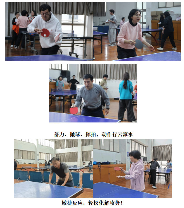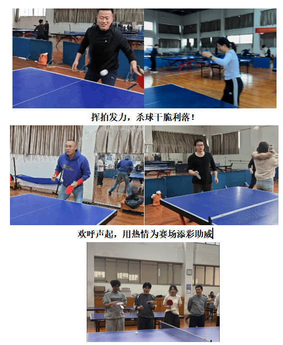3月22日中午,学院教职工乒乓球比赛在风雨操场举行。赛场上,老师们精神抖擞、神采飞扬。直拍、横拍灵活切换,扣杀、提拉干脆利落,旋转球、弧线球精妙打出,乒乓球在球台上来回穿梭,划出一道道灵动的弧线。